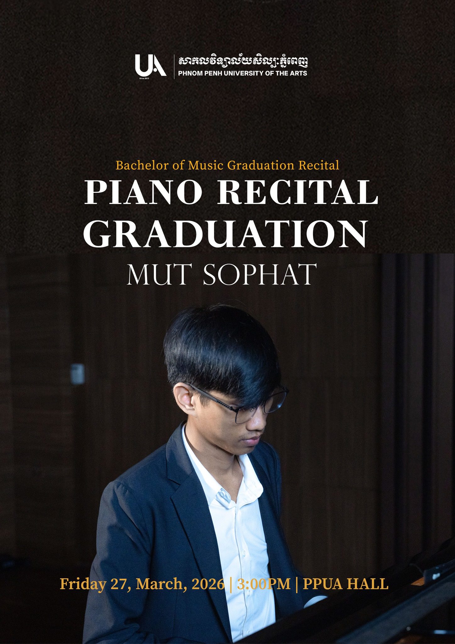 Join us for the Bachelor of Music Graduation Recital of Mut Sophat at the Phnom Penh University of the Arts. Experience a special afternoon of piano performance celebrating dedication, passion, and musical achievement.